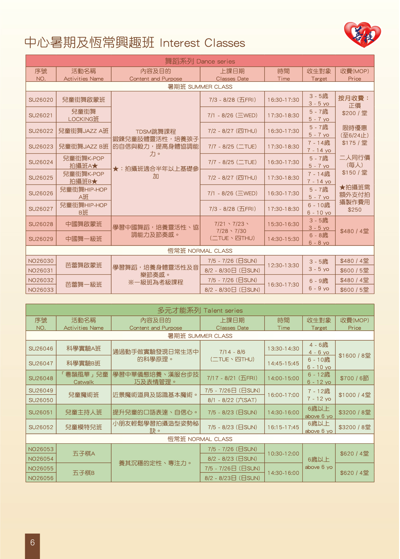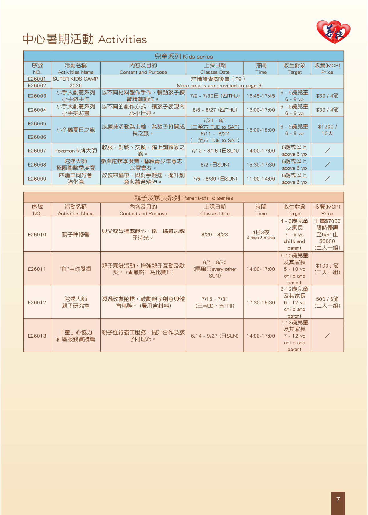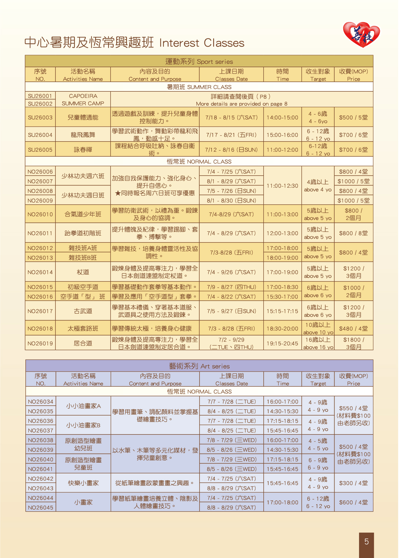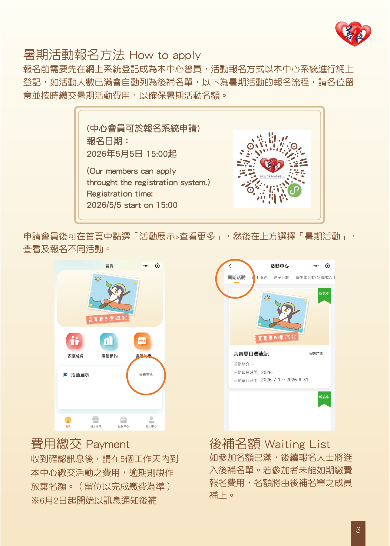 ★暑期班及活動報名日期:2026年5月5日下午15:00起